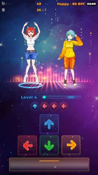 3、角色动作与音乐节拍高度契合,随难度提升舞步复杂度逐步增加,进一步强化了节奏代入感,使玩家仿若亲临真实舞厅现场。游戏玩法: