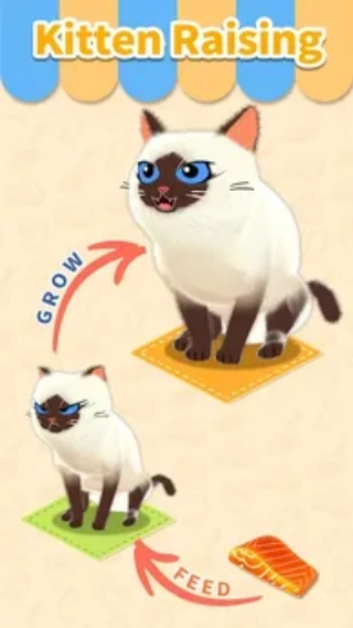 2.猫咪会成长,从萌萌的小奶猫成长为优雅的成猫,游戏了“猫猫日记”和“相册”功能,会自动记录下那些温馨或搞笑的瞬间:第一次成功使用猫砂盆、抱着玩具睡着的样子、被窗外小鸟吸引的专注背影……这些珍贵的数字回忆,构成了你们之间独一无二的故事集;