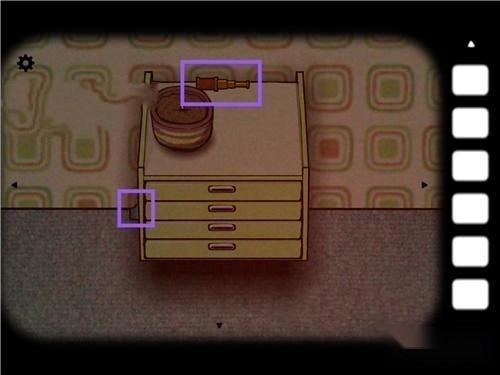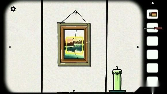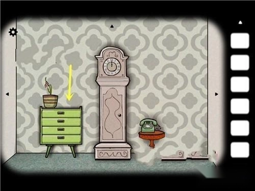 我们还是先默认面对有大型钟的那一面,在盆栽所在的柜子上拿到望远镜,接着持续点击盆栽,会看到有一只手伸出来又缩回去,这时就能拿到第一块相框碎片。打开抽屉可以找到螺丝刀和火柴,柜子旁边还有一块碎片,房间里钟的上方也能拿到一块碎片。