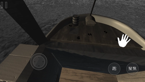4、在轮船甲板场景中,看到脚印等线索时,点击画面中的手掌交互区域,可触发线索收集或任务推进。