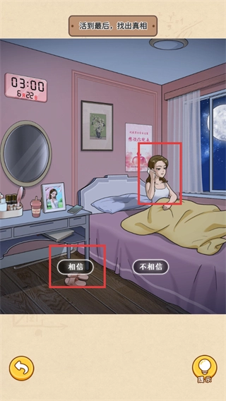 4、接到电话时选择【相信】,会触发不同剧情走向,需谨慎判断。