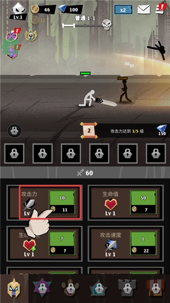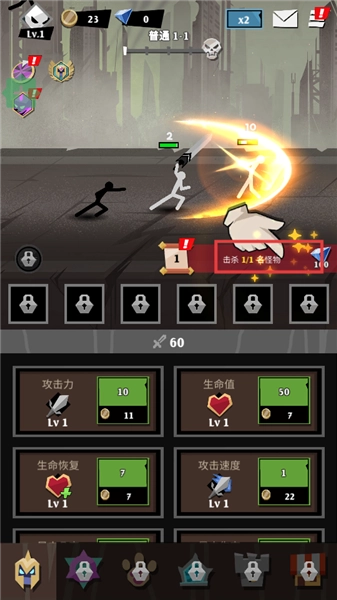 3.下面就是强化自己的属性,战胜更多的敌人。