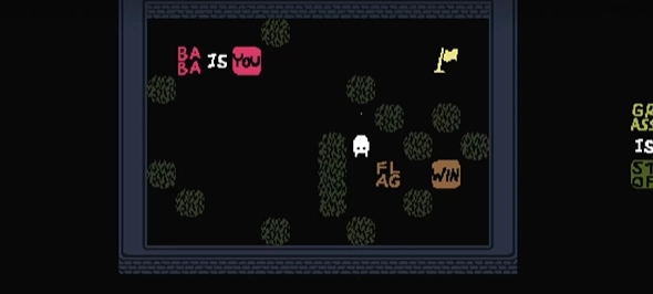 1、 所有游戏规则都是可推动的文字块,重组 “[事物]+IS+[属性]” 句式,就能直接改变关卡逻辑。