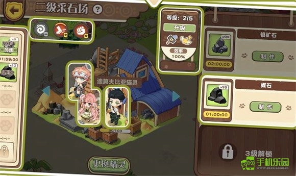 3、把精灵安置在生产建筑里后,该建筑就会持续产出特定物品,而入驻工作的精灵会不断消耗精力。每个生产建筑最多能容纳3位精灵入驻。依据精灵自身的特质与技能来进行恰当搭配,能让效果更好、效率更高。