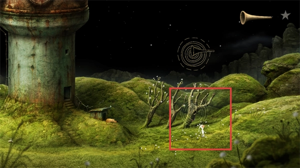 1、靠近有波纹的树区域可获得关键道具【号角】,用于后续场景互动。