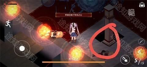 2、莉萝提供的打法是依据钟声来判断。钟声敲了几下,就攻击boss对应几点钟方向的火焰。例如从左上往下数依次是七下、六下、五下的钟声,而右下角对应的则是四下钟声。