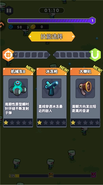 3、当上方进度条充满时,解锁新的武器或道具,为你的冒险保驾护航!