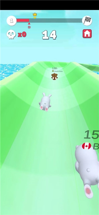 4、在滑道上快速的滑行追上对手,进行碰撞努力的将对手撞出去,获取较高的分数争夺排名。