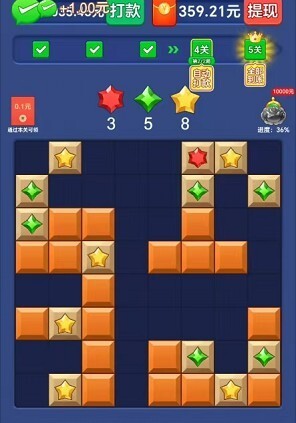 新出的拼方块小游戏挺不错的,新手玩家把前3关的3个小红包都领完,大概能拿到0.4左右;我后来玩到第5关时,又额外领到了0.1。大家要是有空的话,可以多玩几局试试。