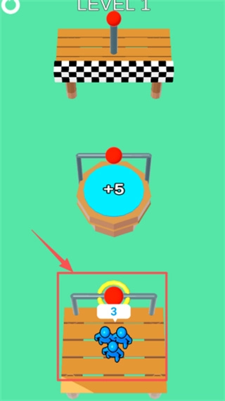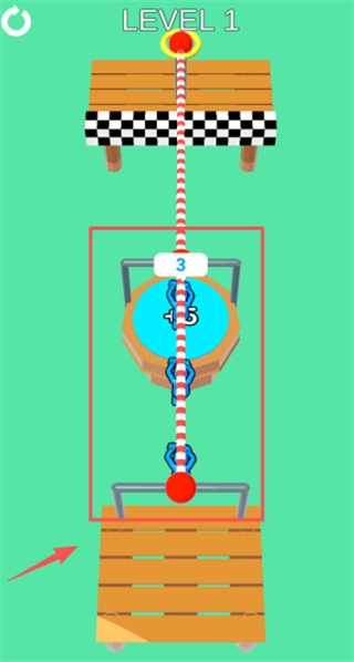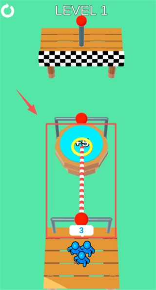 1、在游戏起始界面中,玩家需要点击最上方的红色启动按钮,或是选择带有数字3标识的对话框旁的操作按钮,即可护送蓝色小人开启绳索闯关挑战。