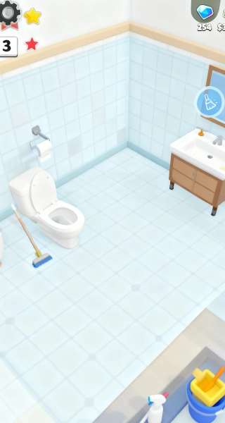 1、使用拖把等清洁工具,按照从马桶周边到地面、再到洗手台附近的顺序,仔细清理每一处区域,确保卫生间整洁度达标,以此获取更高的清洁评分与奖励。