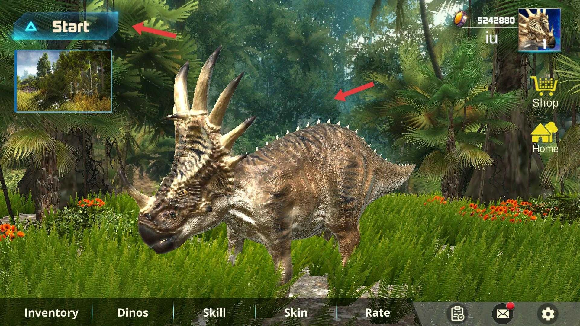 2、进入后能看到恐龙形象,界面还有Shop等功能按钮,可在其中查看和使用相关功能,为后续模拟做准备。