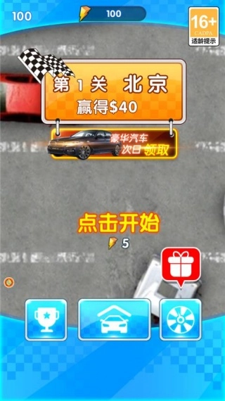 进入游戏后,先领取初始车辆,接着从第一关的地图开始挑战。