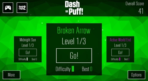 3、白色方块点,暗示着最佳行进路线,不过每一关都是随机刷新,这意味着挑战难度更高。若有幸通关,玩家可返回主界面,在关卡的左侧找到如图所示的界面。