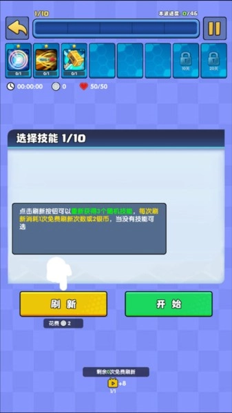 2、选择关卡后装配技能,可从随机给出的技能中挑选。