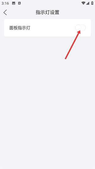 4、在【指示灯设置】界面,可点击【面板指示灯】的开关,对其进行开启或关闭操作。