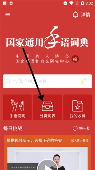 1、打开【国家通用手语词典】首页后,点击页面上的【分类词表】选项,即可进入分类词表页面。